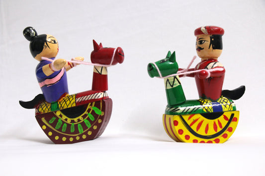 Channapatna Toys – Locally crafted – Raja Rani in Horse Pair toy - For Kids / Home decoration / Office decor – Height – 5 inches - P000198/P000199Vendor:Indo KraftsRegular price Rs. 480.00Regular priceUnit price / per-